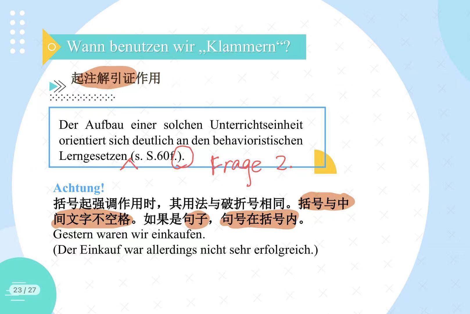 在PPT中显示,括号起两种作用。但在例句结尾处,一个有明显空格,一个无明显空格。