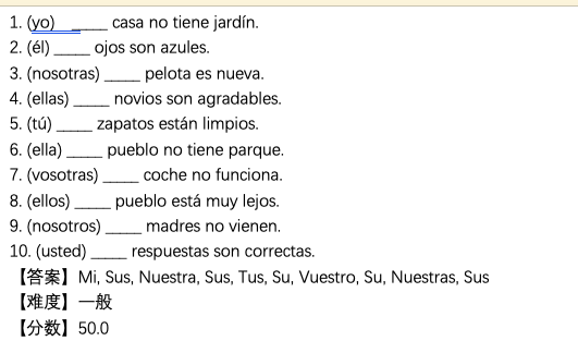 本次作业第1题的第9小题,9 (nosotros) ________ madres no vienen.