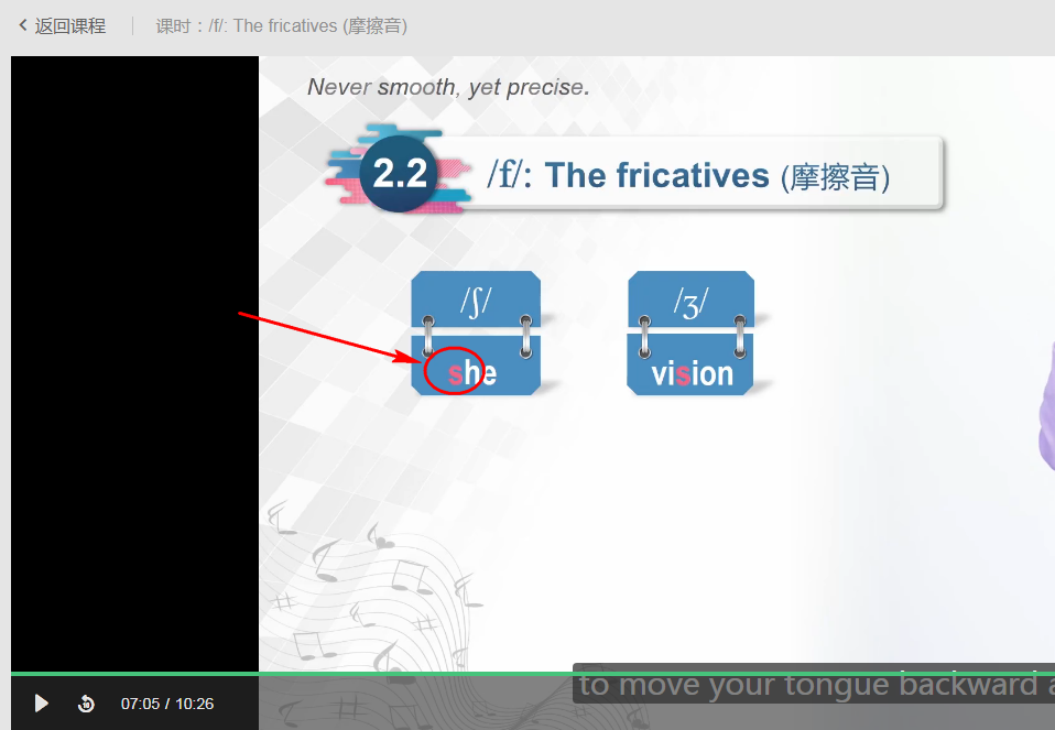 此处,可能是老师口误,把“后元音”说成了“前元音”,同时字幕也错了