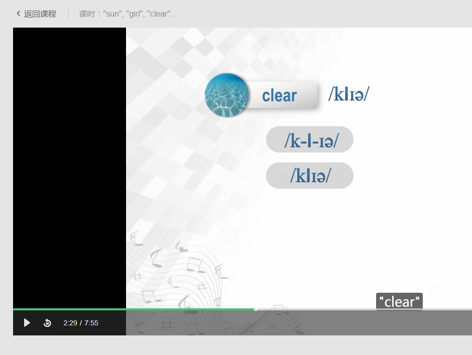 这一部分clear的发音领读和说明,老师的语音是错误的,全部放的是gri的语音,只有到后面例句部分才恢复正确。不过字幕是正确的。