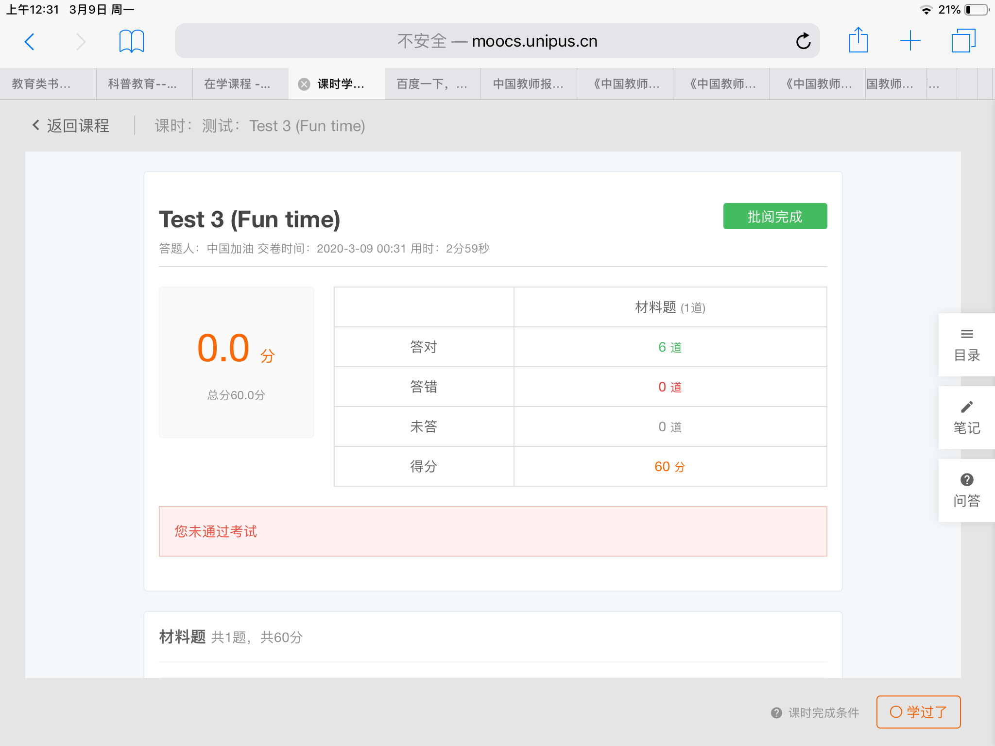 有点奇怪,全对为何显示未通过考试?