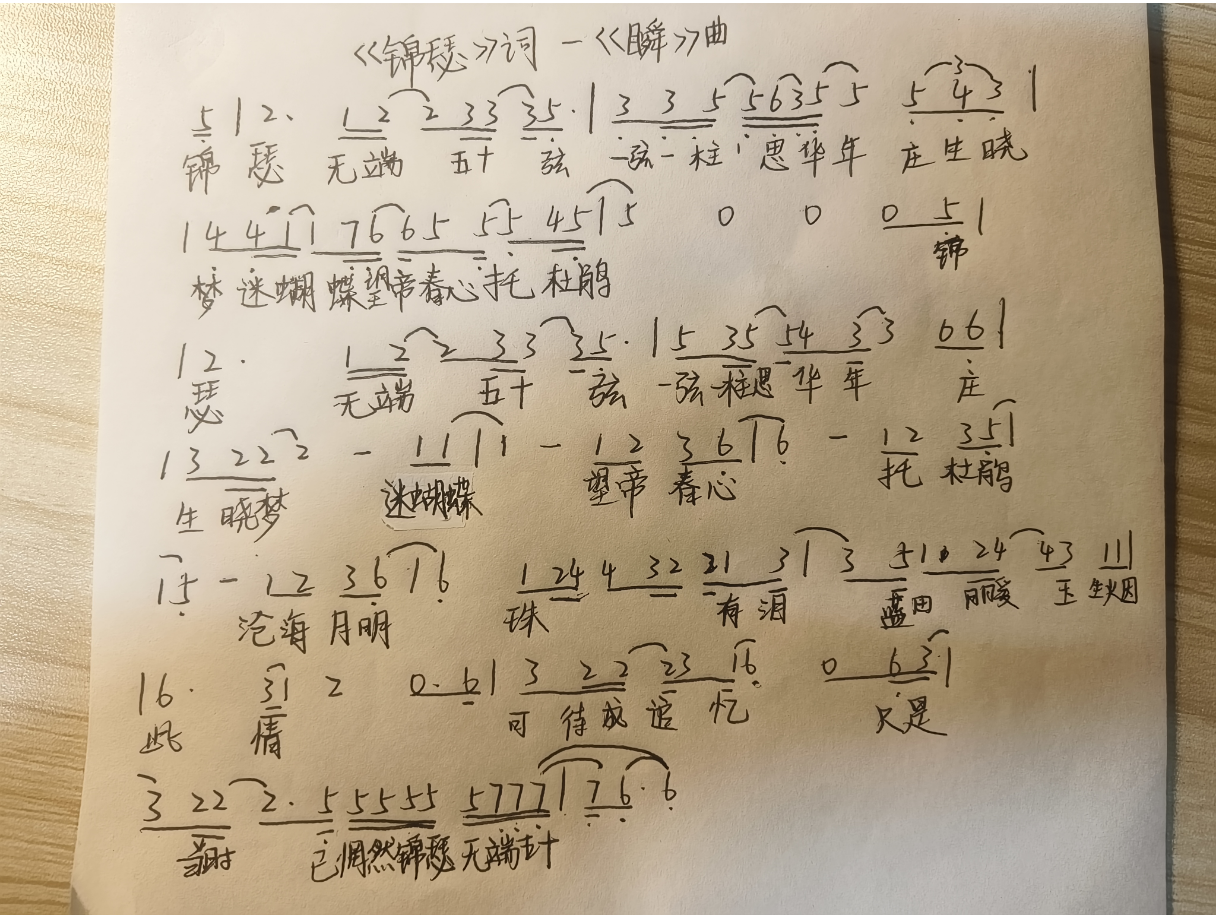 1.Please send a video of yourself singing "The Inlaid Harp".请发送自己演唱《锦瑟》的视频。 2.Try to re-arrange (no less than four sentences) the phrase "The Inlaid Harp" and send the audio of your singing.尝试给《锦瑟》这首词重新编曲(不少于四句)并发送自己演唱的音频。